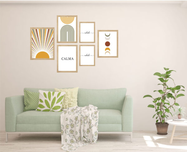 Set de 6 cuadros irregulares con diseño “Boho Calma”